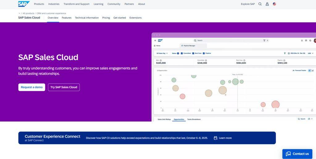 SAP Sales Cloud是SAP庞大的客户体验(CX)解决方案套件中的核心销售模块。它最大的优势在于能够与SAP的后端ERP系统(如S/4HANA)进行深度且无缝的集成。这种原生的集成能力,使得企业可以将前端的销售活动数据与后端的供应链、财务和生产数据直接打通,从而为销售人员和管理者提供一个线-degree的客户视图。