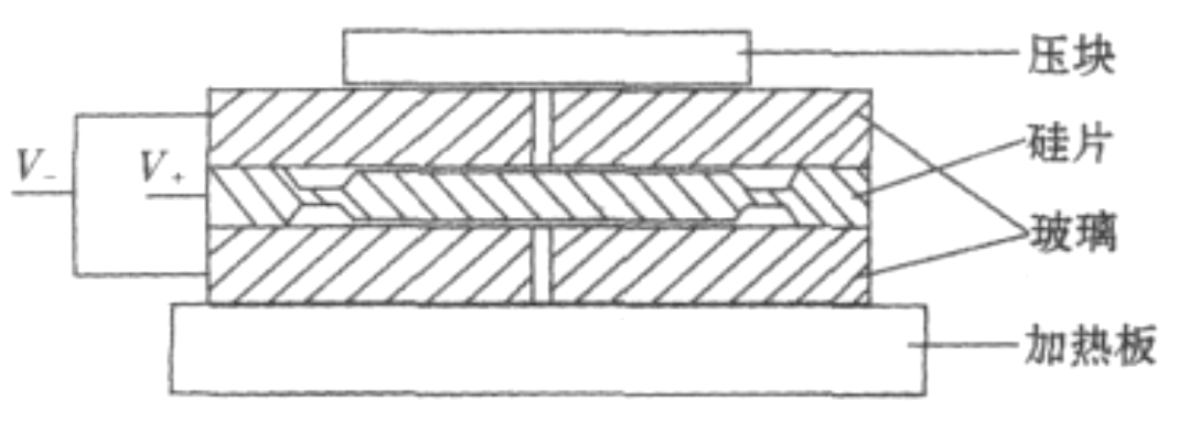 在硅片和玻璃之间的界面上形成的静电场力会在界面上产生新的物质,即二氧化硅,足以将硅片和玻璃牢固地封接在一起,其物理和化学反应可以表示为(3):